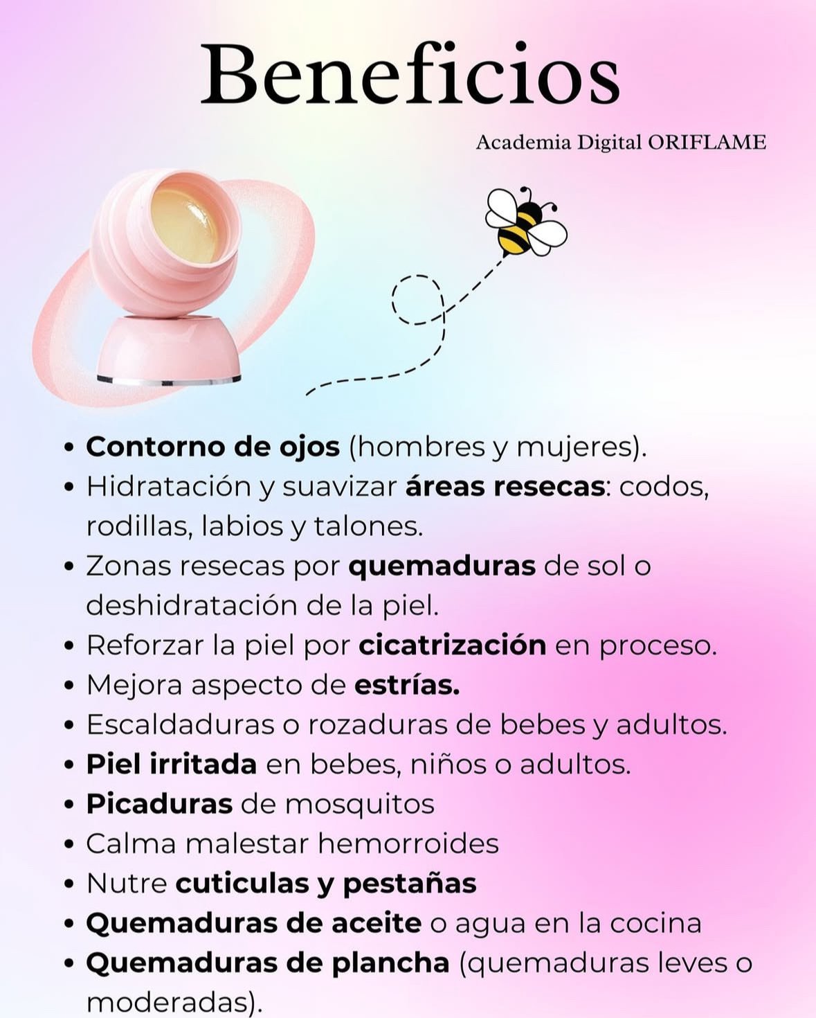 Nutrición profunda gracias a una mezcla excepcionalmente hidratante de Aceites naturales, Cera de abeja y Vitamina E.